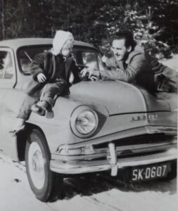 Pierwszy to błękitna Simca Aronde, z rejestracją SK 0607. Jej charakterystyczna sylwetka samochodu z lat pięćdziesiątych budziła podziw, wyróżniając się wśród nielicznych pojazdów widocznych na ulicach PRL-u. Model, którym jeździł ojciec powstał w roku mojego urodzenia. Kiedy miałem siedem, a może osiem lat, tata posadził mnie na kolanach i pozwolił kierować. Zdarzyło się to w drodze z Białobrzegów do Błeszna. Doskonale pamiętam wyłożoną okrąglakami szosę i miejsce, zaraz za zakrętem do Radzanowa, gdzie autobusy jeździły kilka razy na dzień, a poza tym prawie nie było ruchu – czasem przemknął tylko wiejski motocyklista na Jawie, albo Junaku. Ojciec stwierdził, że będę dobrym kierowcą, co wprawiło mnie w wielką dumę. Nie wiem dzisiaj, co stało się z Simcą? Pewnie została sprzedana przed wyjazdem ojca do Kopenhagi. Była częścią mojego dzieciństwa i rodziny. Błękitna, jak niebo, jakże odmienne od szarych lakierów pokrywających milicyjne Nysy i Warszawy, których drzwiami trzeba było zawsze mocno trzasnąć, by się prawidłowo zamknęły.