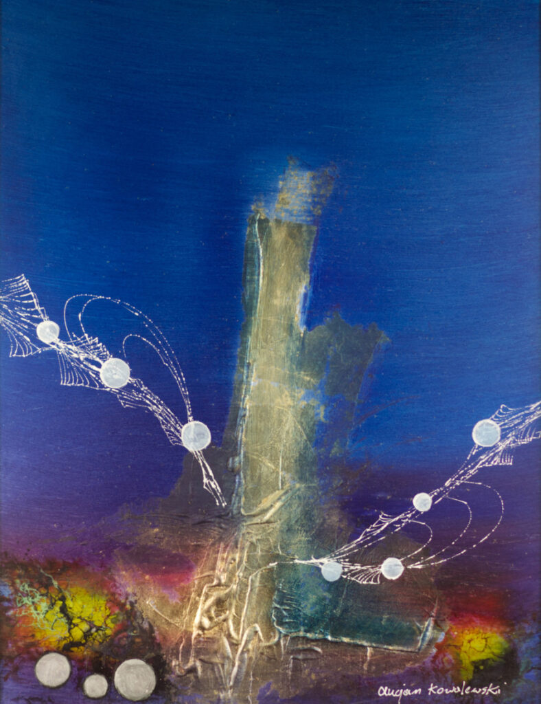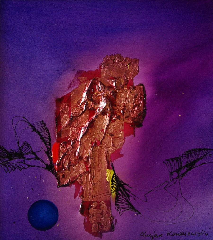 Znam twórczość Lucjana Kowalewskiego (1950-2022) od ponad trzydziestu lat. Należał do tak zwanych artystów „abstrakcyjnych”, zbliżonych do tracącego wówczas już popularność i poparcie krytyki nurtu „informel”. Dopiero upływający czas odsłania prawdziwe oblicze Kowalewskiego, który staje przed nami, jako oryginalny twórca, świadomy swojej wizji i artystycznego przesłania. Jego związki z „gorącą abstrakcją” są równocześnie oczywiste i odległe tą odrębnością pozwalającą od razu rozpoznać autora dzieła – po charakterystycznym stylu, kolorystyce i znaku indywidualności. Pobieżni obserwatorzy malarstwa Lucjana zarzucą mu monotonię formalną i tematyczną; nic bardziej błędnego! Podobnego doświadczenia doznałem obcując z twórczością Miro. Pierwsza, młodzieńcza fascynacja zakończyła się smutną konkluzją, że hiszpański surrealista powiela sam siebie, nie odkrywając niczego nowego. Dopiero retrospektywna wystawa, którą miałem okazję obejrzeć w Paryżu końca lat siedemdziesiątych, uzmysłowiła mi w jak wielkim byłem błędzie. Dostrzegłem, że w obrębie tej samej stylistyki, tych samych tematów i obsesji można odsłaniać coraz to głębsze przestrzenie, odnajdywać nowe znaczenia i wartości, tak trudne do nazwania słowami i intelektualnym wywodem. Podobnej satysfakcji doznaję, systematycznie obserwując rozwój i cierpliwą ewolucję twórczości Kowalewskiego.