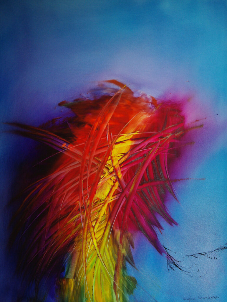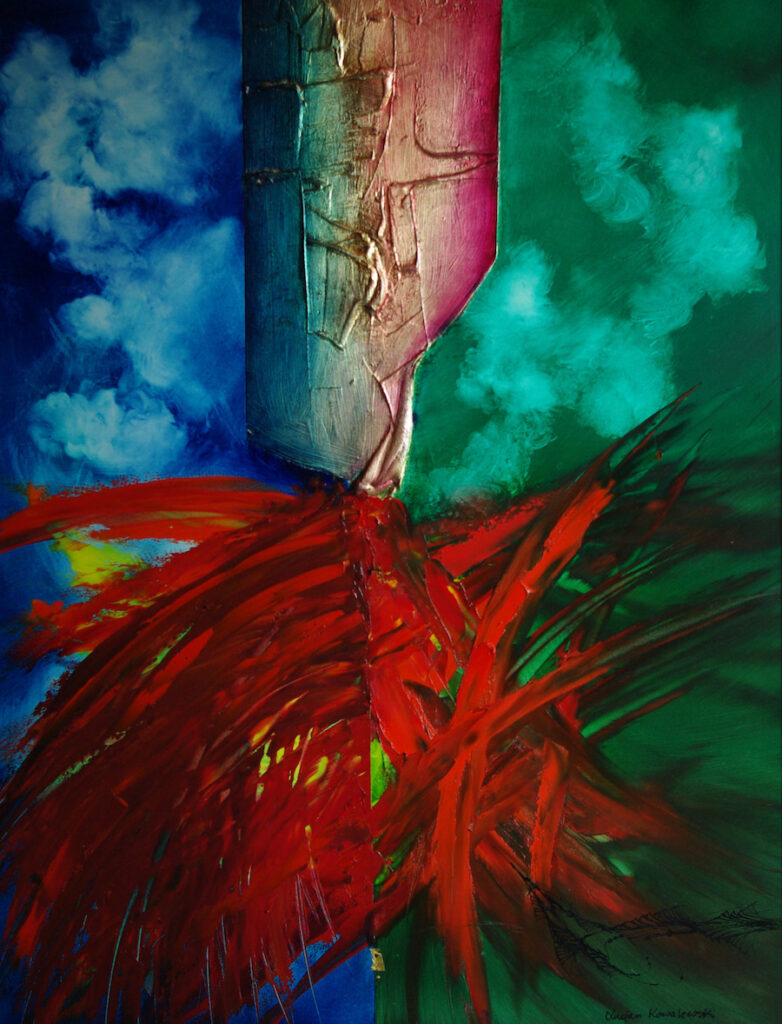 Jego abstrakcja ma solidny, oparty na receptach wielkich mistrzów grunt, pozwalający na wydobycie najpiękniejszych, żywych kolorów i nieokiełznanych emocji, które artysta przedstawia, jako wartości niewzruszonych podstaw naszego bytu i wędrówki przez życie. Kładzenie niezliczonych laserunków jest w tym kontekście nie tylko zabiegiem technicznym, ale świadomą próbą odsłaniania kolejnych warstw świadomości i niepojętych głębi.